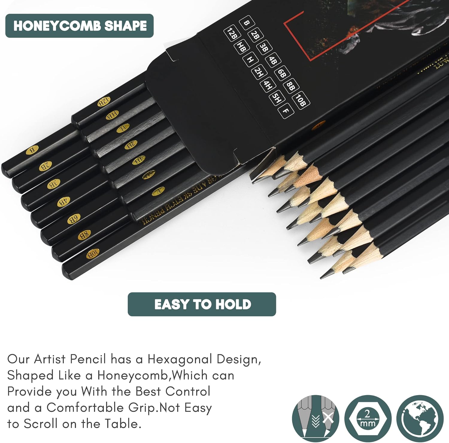 Drawing Pencils Set of 14 (B – 12B) Sketching Pencils for Drawing, Shading & Doodling | Professional Sketch Pencils Graphite Grades for Artists & Beginners