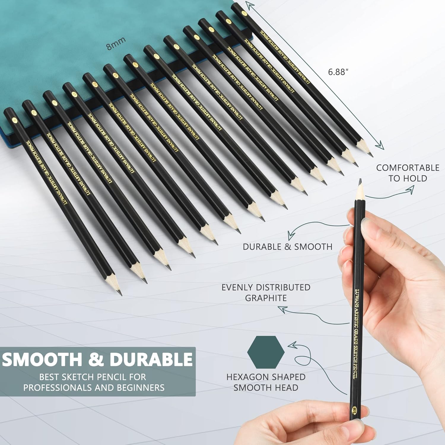 Luwans is a US brand. We have a mission to assist in establishing a society that understands, preserves, appreciates and encourages art & culture. Art of any sort requires favorable conditions to excel, especially dependable drawing sets for artists. With flimsy artist pencils that have broken lead and require honing again and again is distraction. Kids, adults, artists, architects everybody requires a reliable drawing pencil set. Luwans’ professional drawing pencils set of 14 different shades is the answer to all grievances. Ergonomic design, variety of grades & degrees and quality wood, so that artists could express their creativity with focus & peace of mind. Specifications: Pack: 14 sketching pencil set Color: Black Material: Wood & Graphite Length: 7 inches Shape: Hexagonal Art Pencils Head: Dip shape head Graphite Color: Black Grades: H 2H 4H 5H F B 2B 3B 4B 6B 8B 10B 12B HB pencils In a professional sketch pencil set, a fine detailing, blending, outlining, graphite pencil in an artist’s hand can reflect his/her creativity. Our portrait sketch pencils for drawing, cover a complete range to create tones, shades, lines and smudge factor in sketchbook or paper. We offer a versatile art pencil set for fine detail, designing, sketching, portraiture, writing, blending etc. Use desired depth, dimensions & degrees with Luwans’ complete set of 14 drafting pencils. A great gift idea to keep children and teenagers busy in expressing themselves. You are always welcome to get in touch and experience our friendly & professional customer support with your questions and feedback.